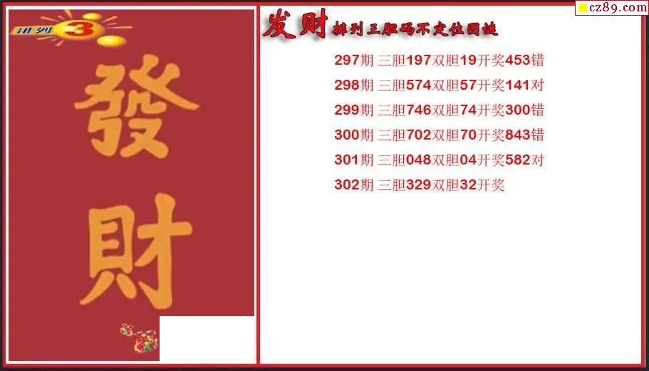 > 2025302期P3发财胆码不定位图谜