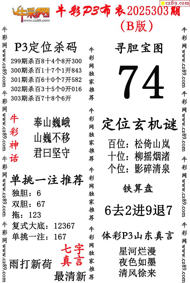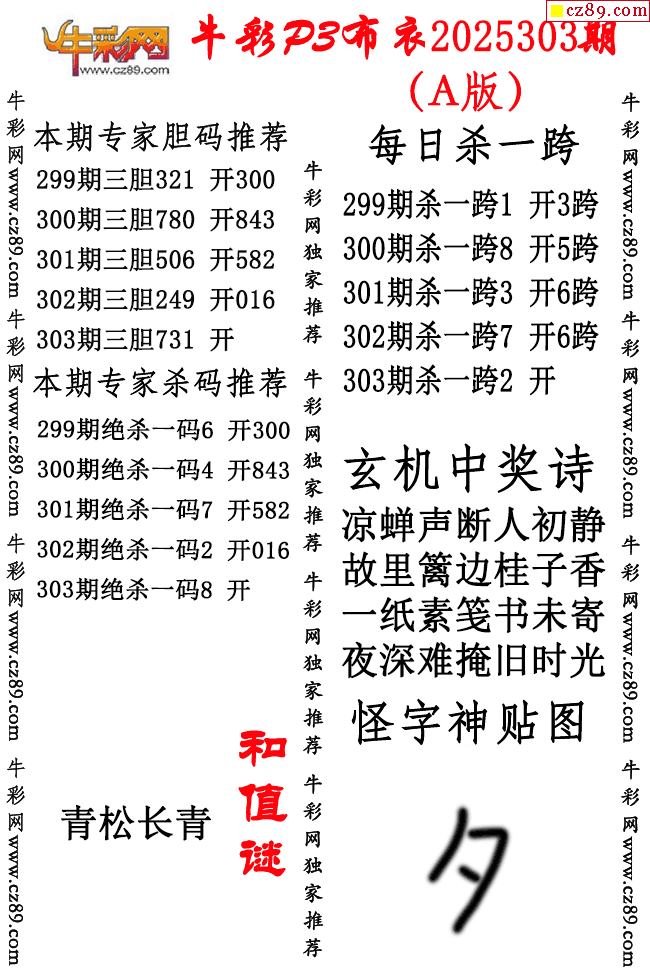 牛彩P3布衣25年303期AB版图谜(精华版)