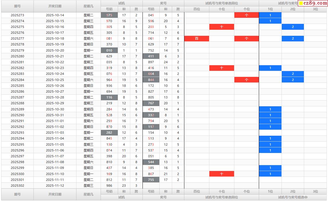 > 25年302期福彩3D试机号走势图表分析