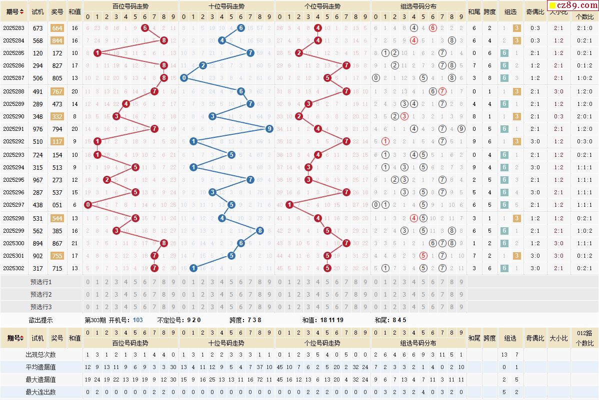 25年303期彩宝贝专家福彩3D杀号定码图表