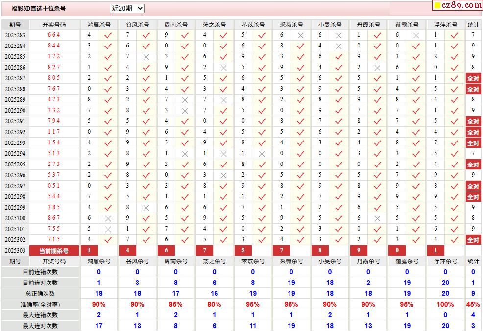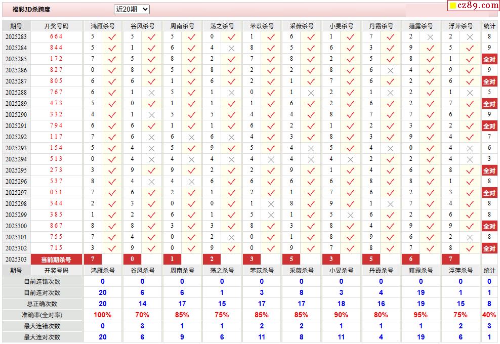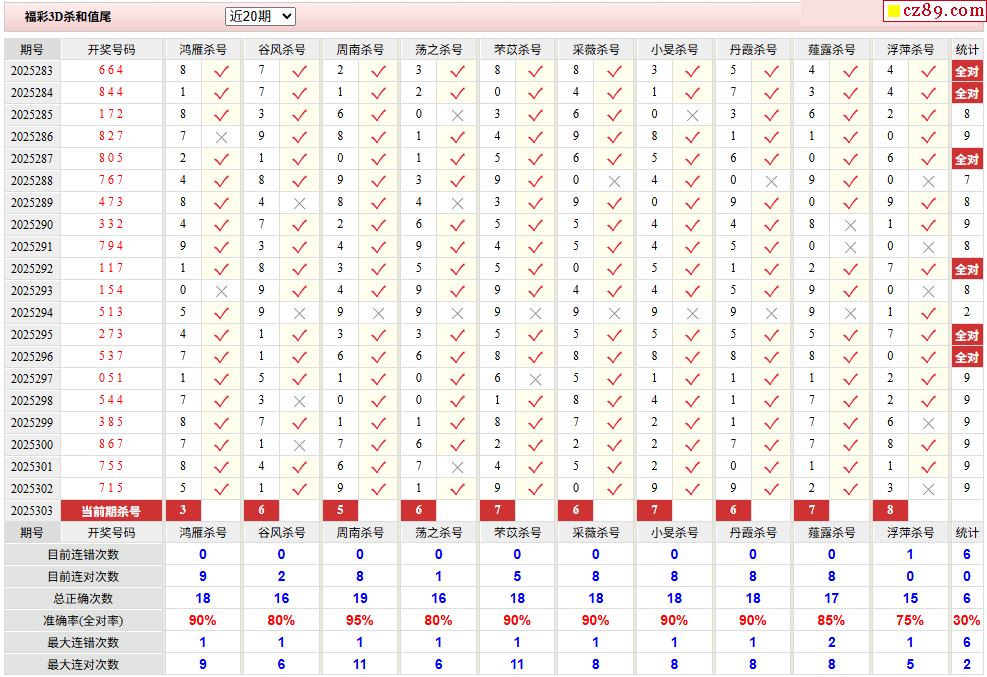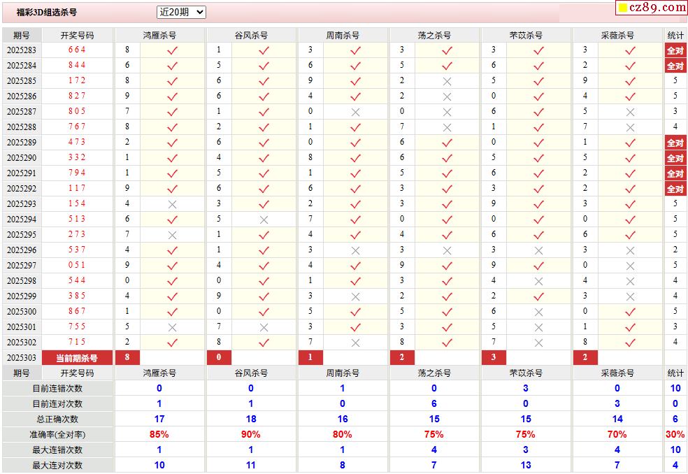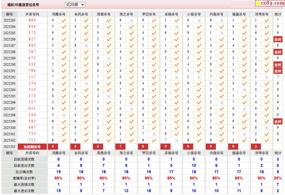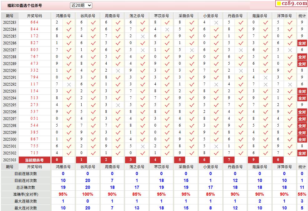 25年303期彩宝贝专家福彩3D杀号定码图表