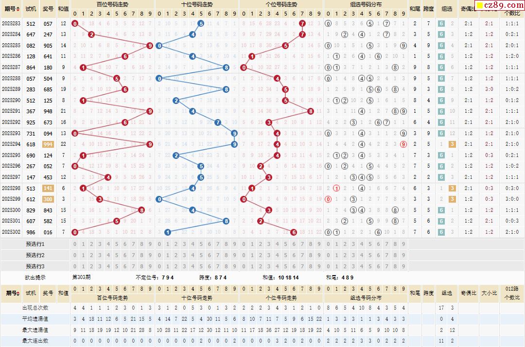 > 303期体彩排列3近期历史号码图表